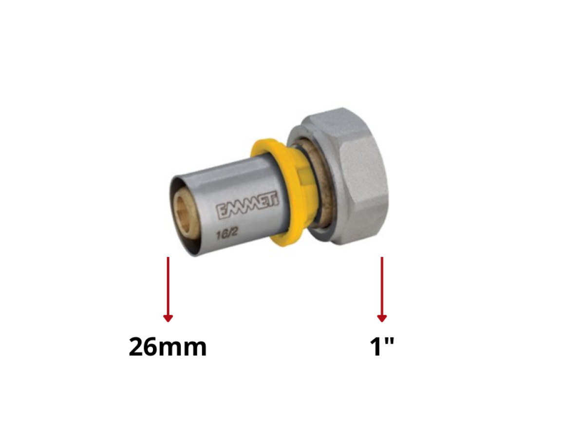 Conector Fêmea com Porca Giratória Gás Multicamada 26mm x 1"