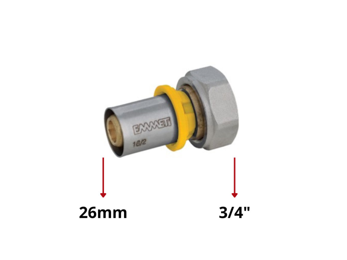 Conector Fêmea com Porca Giratória Gás Multicamada 26mm x 3/4"