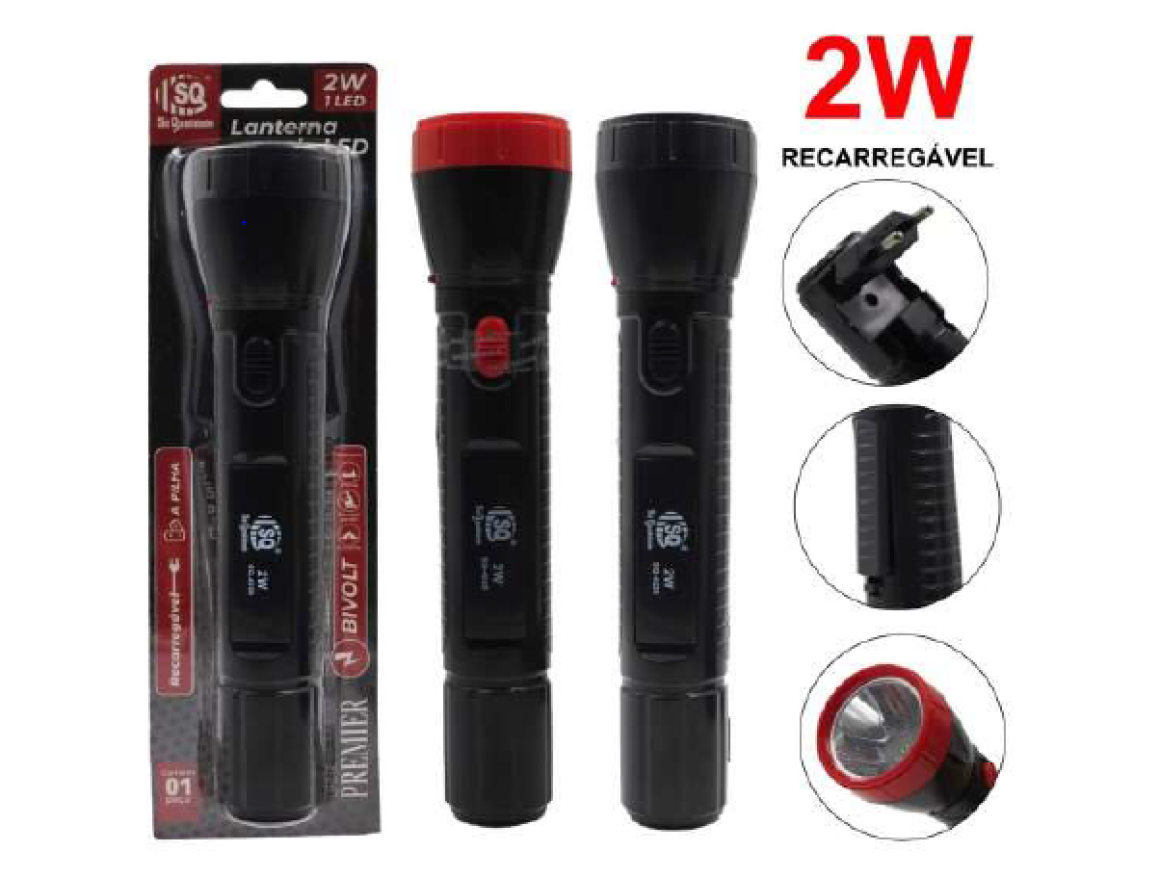 LANTERNA RECARREGAVEL E PILHA 2 WATTS