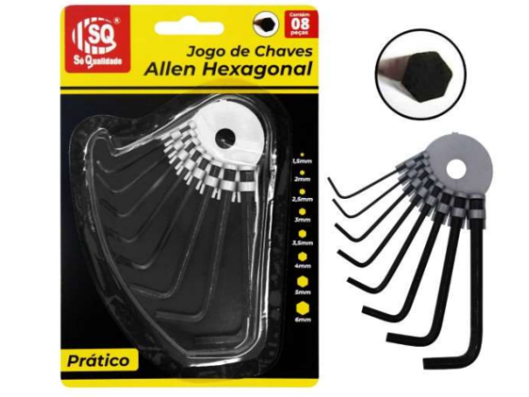 - 8 chaves Allen Hexagonal: