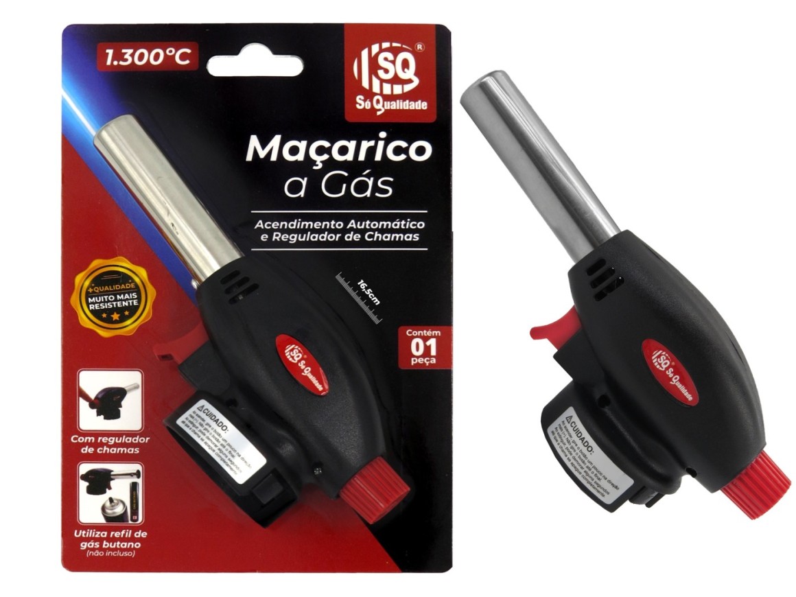 Maçarico à Gás Acendimento Automático Só Qualidade Maçarico Multiuso, regulador de chamas, e temperatura de 1.300 graus, serve desde à utilização doméstica na Cozinha, ao uso como ferramenta para aquecimento de canos, Brasagem e Solda. Prático e de fácil uso.