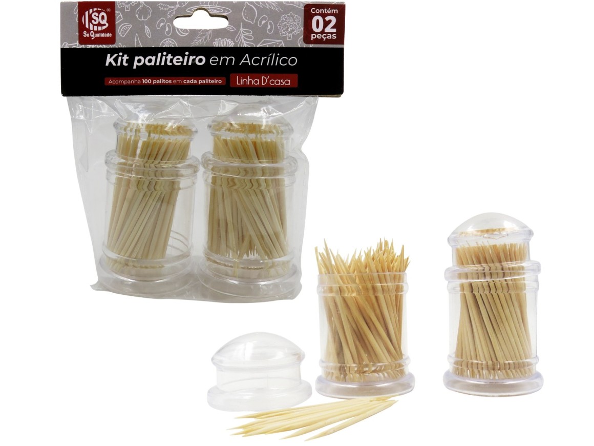 Kit com dois paliteiros em Acrílico com 100 palitos cada para uso em restaurantes, lanchonetes, bares e também domésticos.