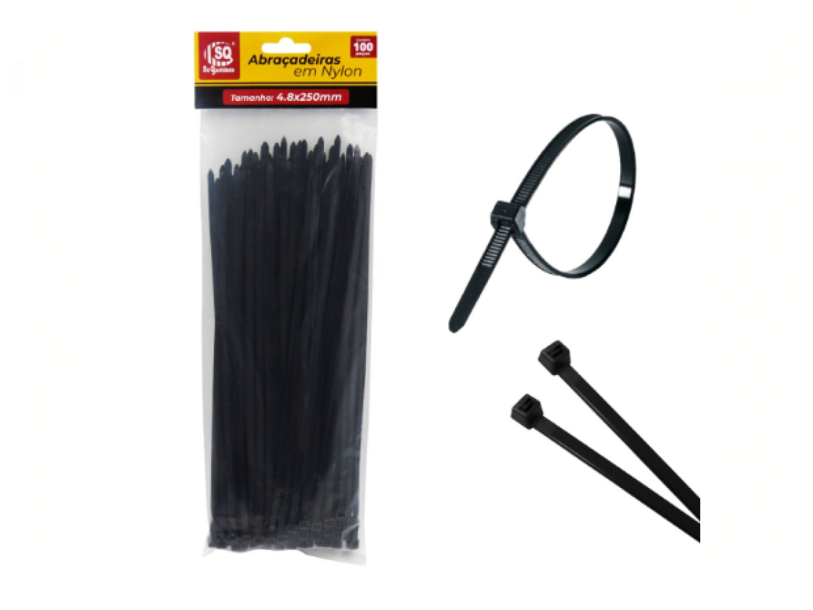 SQ3692 ABRACADEIRA PRETA 4,8 X 250 MM (100 PCS)